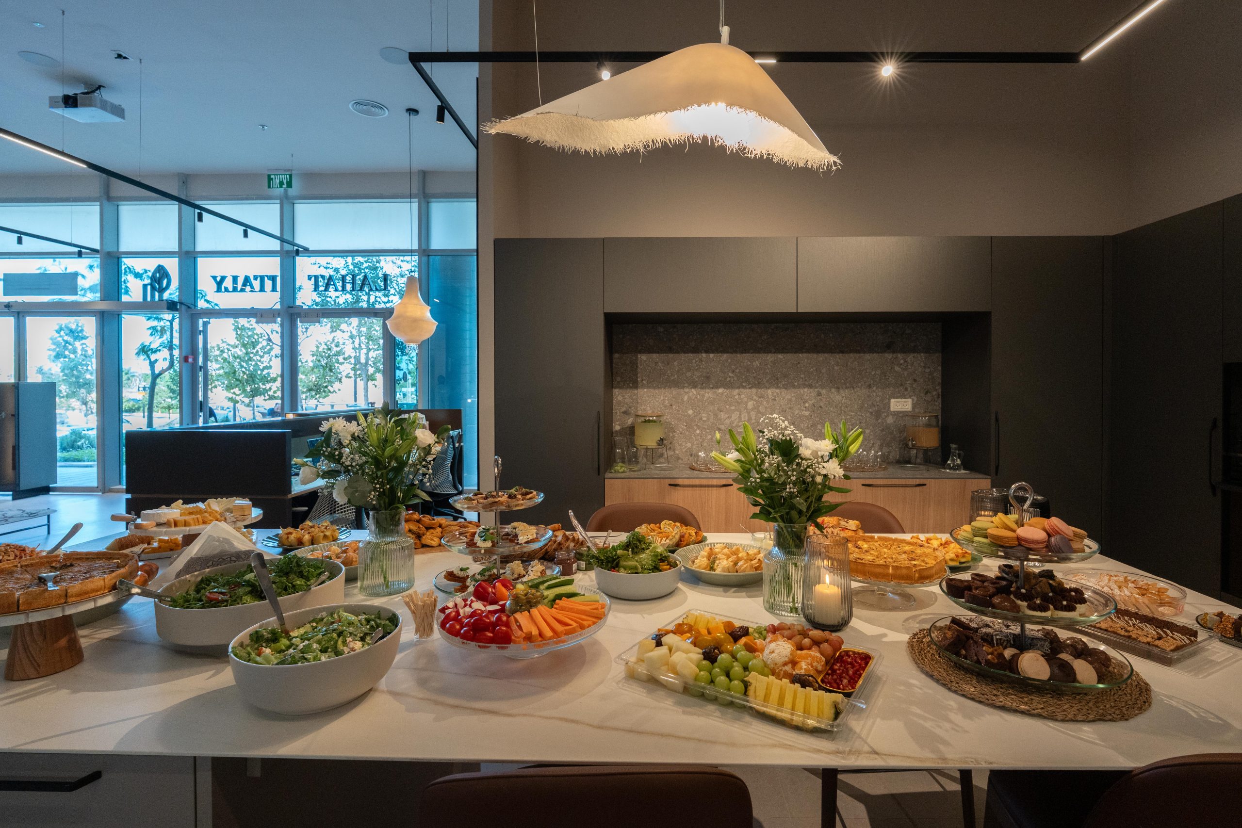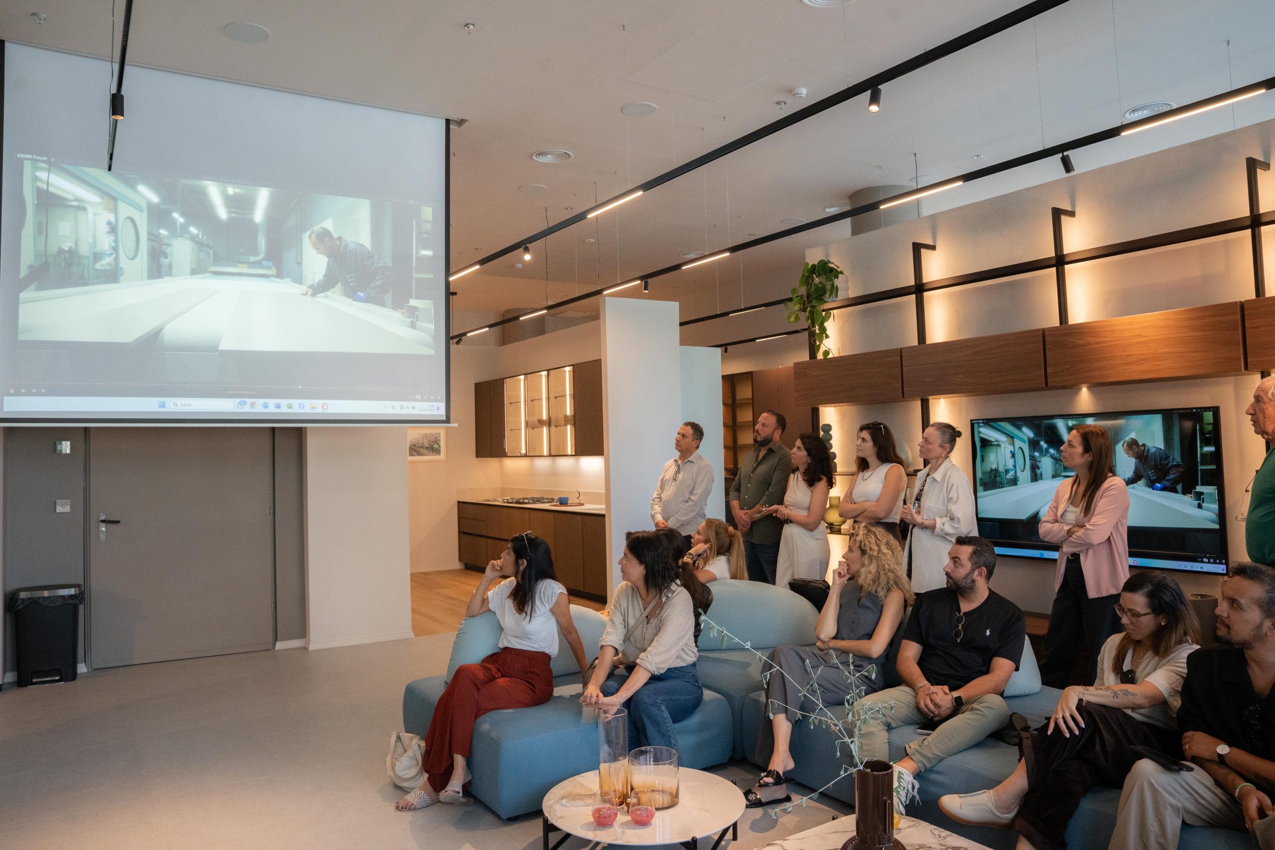 אולם התצוגה (נפתח ביולי 2025) – מוזמנות לבוא להתרשם, וגם להשתמש. זה מרחב שהוא בשבילכן – אפשר לקיים בו פגישות עם לקוחות, להציג חומרים וליהנות מאווירה מקצועית אבל ביתית.